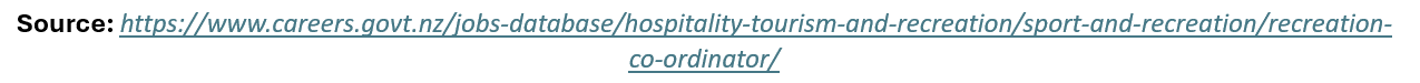 Do you like being outdoors? Are you adventurous? If so, you might be interested in a career as a Recreation co-ordinator. Recreation co-ordinators plan and run community leisure, before and after-school and sport programmes at venues such as recreation centres, parks, clubs and schools.