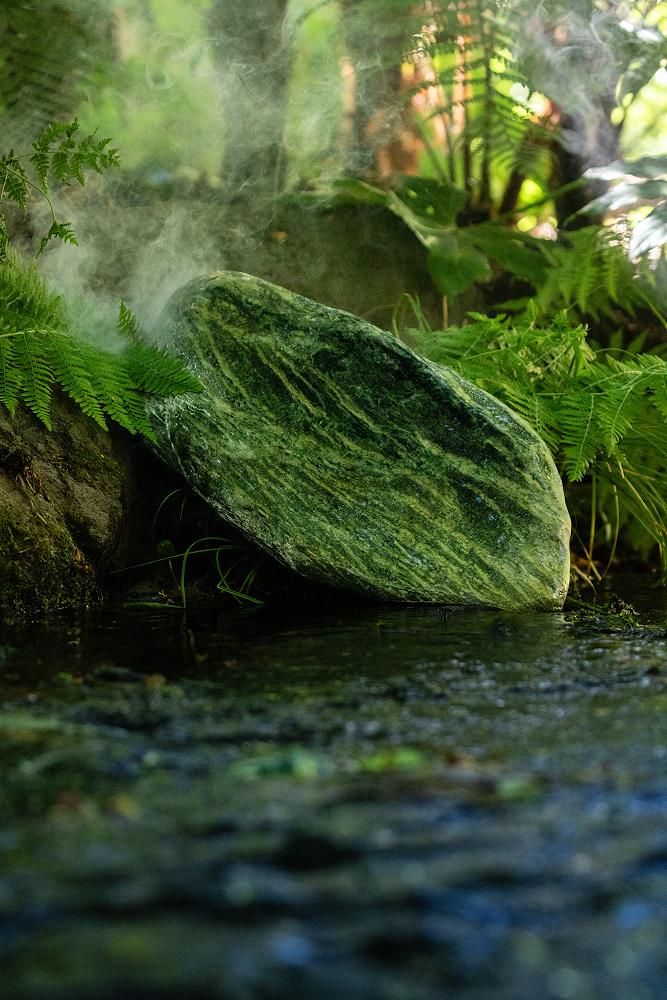 One of the old stories tells of Poutini, a taniwha who guarded pounamu. While travelling along the coasts of Aotearoa, Poutini saw a beautiful woman named Waitaiki. He fell deeply in love and, fearing she would be taken from him, carried her away to Te Tai Poutini. When Poutini reached the Arahura River, he knew he could go no further, so to keep Waitaiki safe forever, he transformed her into pounamu, resting in the river’s depths.